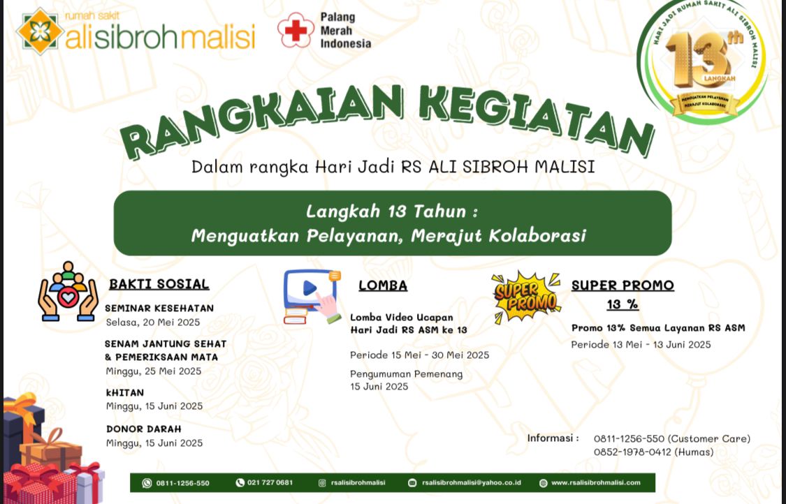 Kamis, 15 Mei 2025 Lomba video Ucapan Hari Jadi RSASM ke 13 8:00 - Selesai